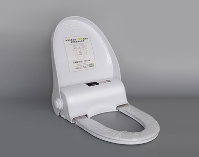 智能便潔墊(自動換套馬桶蓋),按鈕啟動自動更換一次性便潔套(馬桶衛生膜),一人一換,衛生看得見,杜絕交叉感染。人性化雙層座圈,便后溫水沖洗,如廁更舒適。適用于酒店賓館/機場/商場/娛樂休閑/會所/會展等公共場所馬桶。